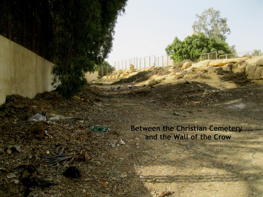 I was steered to be first after the bearers shuffling along the funnel path with the body aloft in front of me…., and then I was jerked to one side as my partner faked a pause for prayer before the Muslim cemetery. The procession filtered into the cemetery and I was jerked to one side again as the big iron gate was opened a few inches for us to slip through and head the few yards to the Wall of the Crow opening. It took just minutes but then we were inside the Christian Cemetery. The hospitality there had been prearranged.